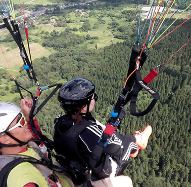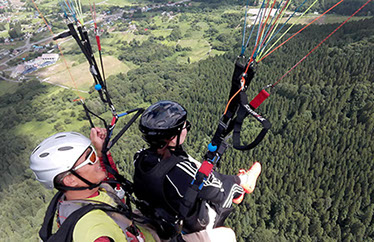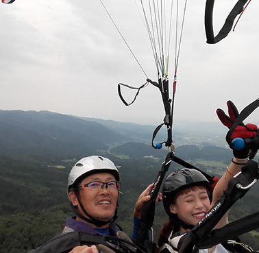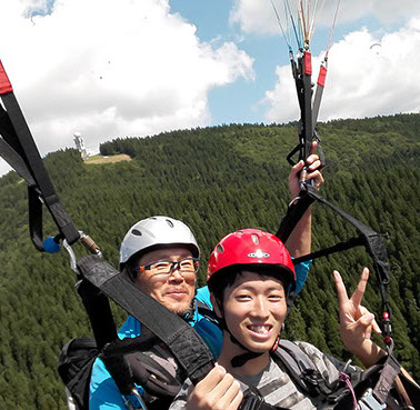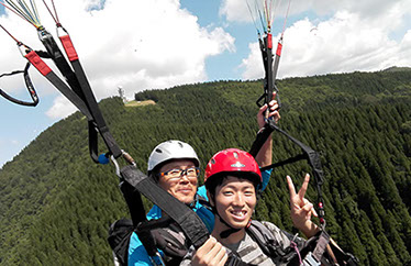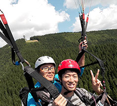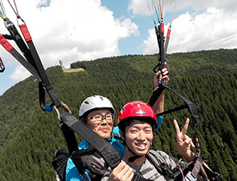 専用離陸場がある山頂からインストラクターが操縦するタンデムフライト。
