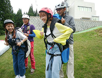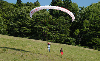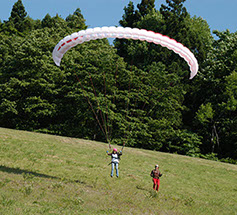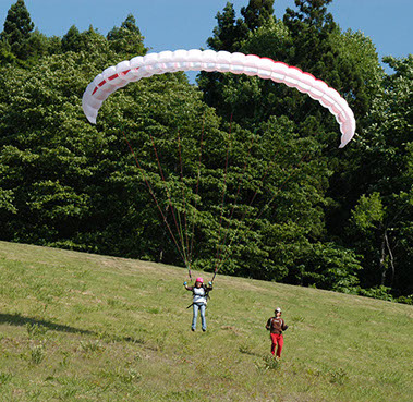 パラグライダーの基本操作を練習場で習得し、