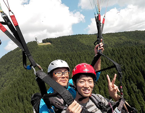 専用離陸場がある山頂からインストラクターが操縦するタンデムフライト。
