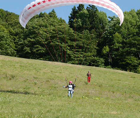 パラグライダーの基本操作を練習場で習得し、