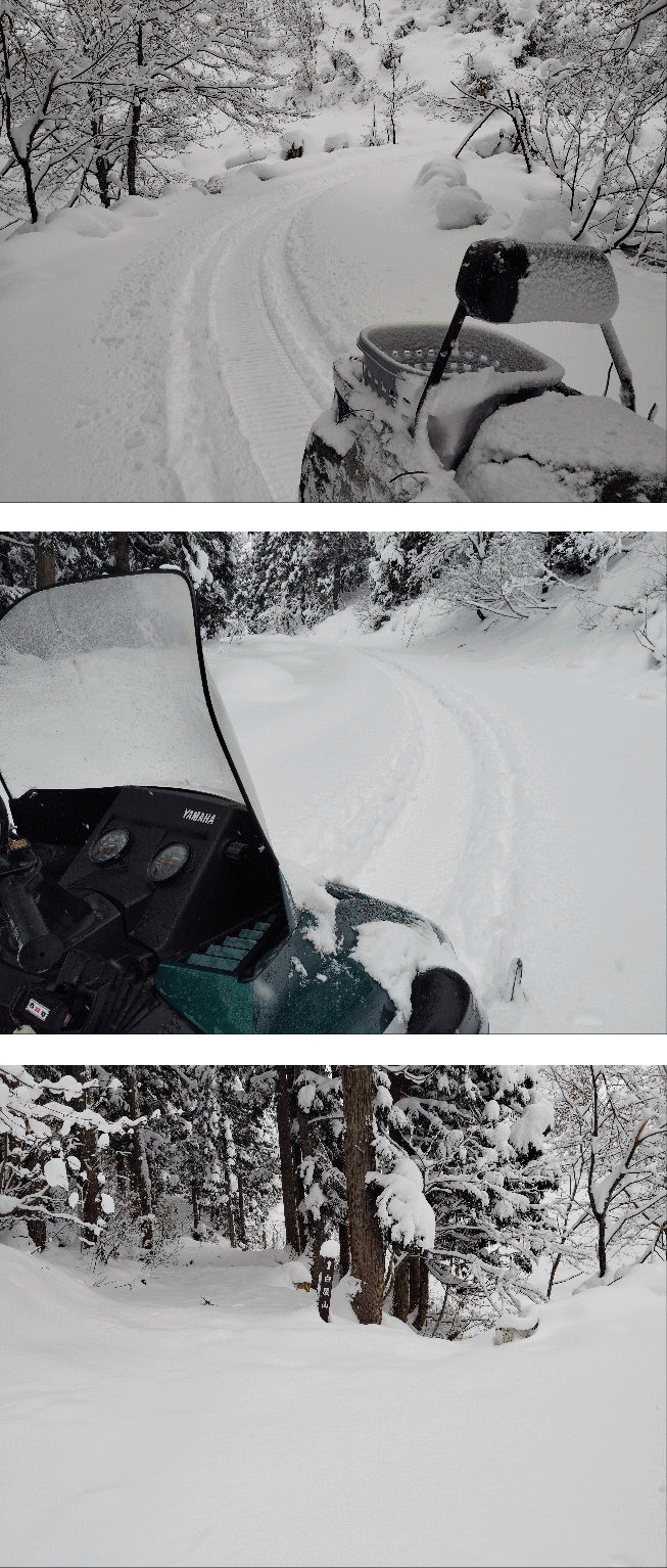 今日は、山頂迄スノーモービルで移動し、積雪を確認してきました。