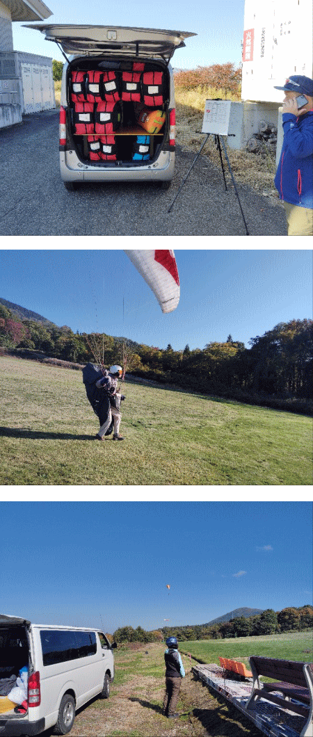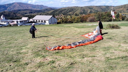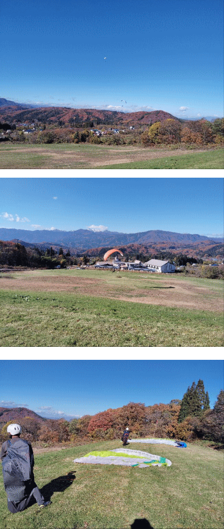 スクールは、午前、午後小山フライトできました。しめのタンデム講習は第3無風?テイクオフしっかりレッスンできました。 |