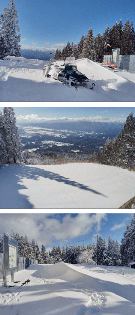 雪が足りない。まだまだスノーモービルで山頂移動できません! |